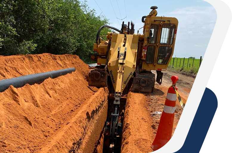Com a expansão da fibra óptica em todo o Brasil, cresce a necessidade de obras lineares rápidas e precisas. As máquinas da Kavas oferecem a solução ideal para operadoras que instalam ou ampliam suas redes de comunicação, com abertura de valas adequadas para cabos subterrâneos.